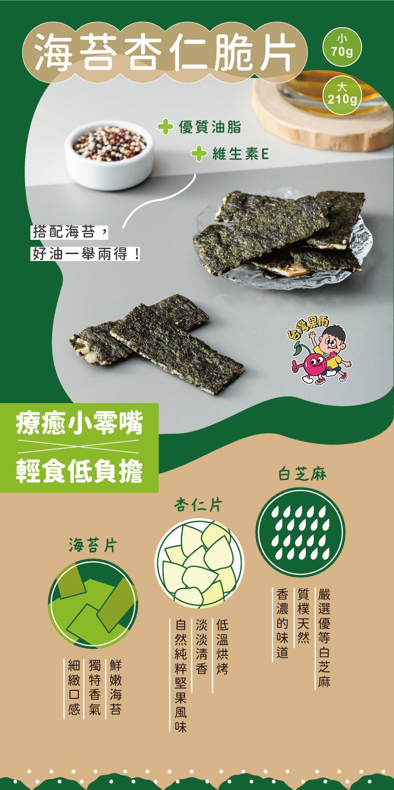 嚴選香酥鮮嫩的海苔,天然的甜味,