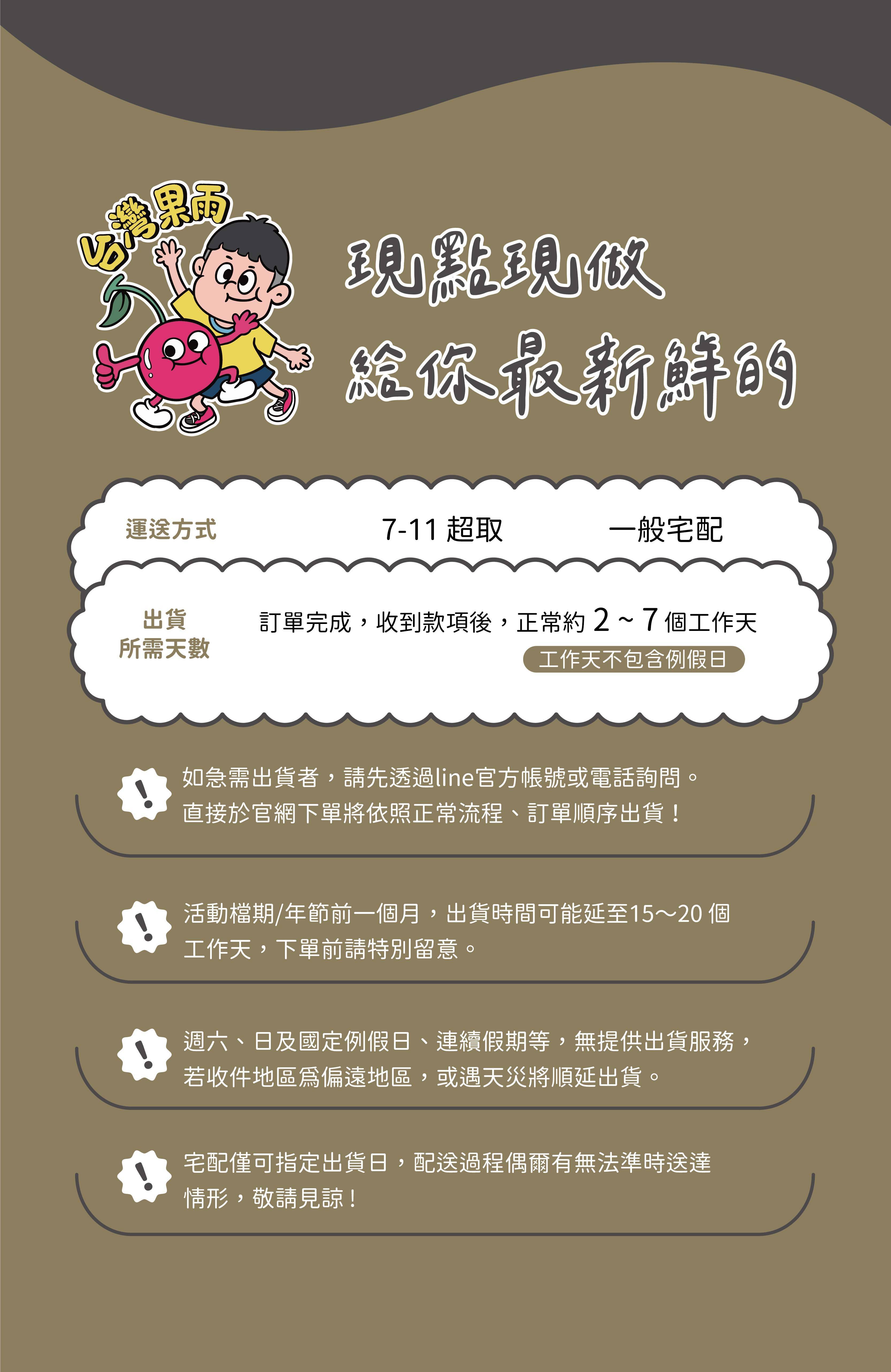 ★ 若有急件需求,務必選擇「宅配」出貨,並於下單後主動聯繫客服提供訂單編號、姓名以利我們協助安排