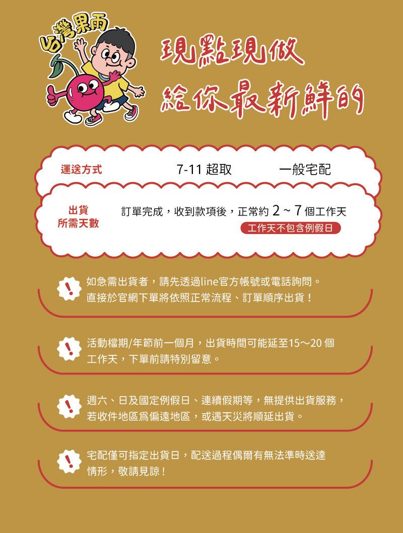 ★ 若有急件需求,務必選擇「宅配」出貨,並於下單後主動聯繫客服提供訂單編號、姓名以利我們協助安排