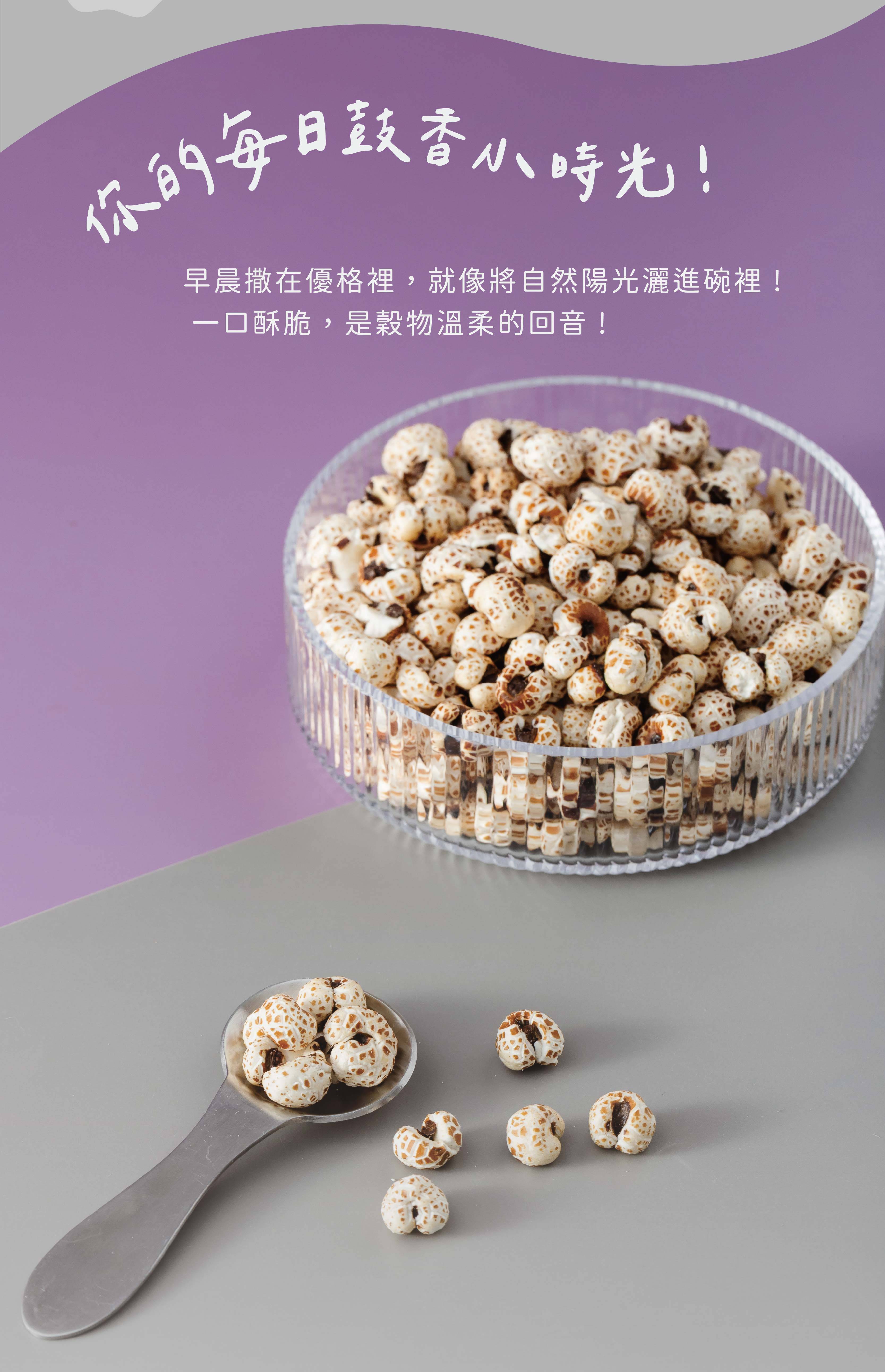 口感類似爆米花,更有營養價值,薄鹽風味,酥脆爽口,
